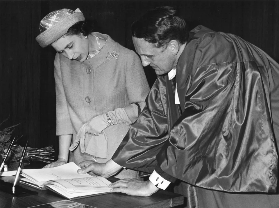 Selwyn Taylor, co-founder of Endocrine Surgery at the Hammersmith and the IAES' first president, meets Her Majesty the Queen at the Royal Postgraduate Medical School at the Hammersmith Hospital.